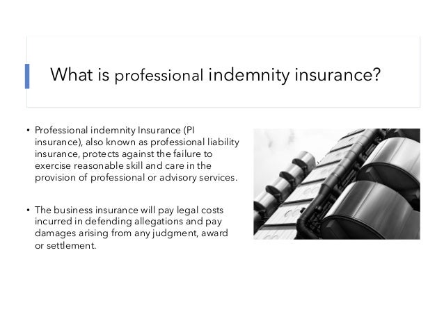 Professional indemnity insurance coverage explained. It typically covers any legal costs compensation or expenses and the cost of work to rectify the mistake should a claim be made against you or your business. Professional Indemnity Insurance is an insurance policy providing risk coverage to professionals against any probable claims arising due to their mistakes or errors. Protection and Indemnity Insurance is liability insurance for practically all maritime liability risks associated with the operation of a vessel other than that covered under a workers compensation policy and under the collision clause in a hull policy.