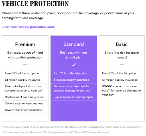 The Standard plan charges 40 of your trip price. If you rent a car with Turo and choose the minimum protection plan the company automatically provides enough insurance to fulfill the states minimum insurance requirements.